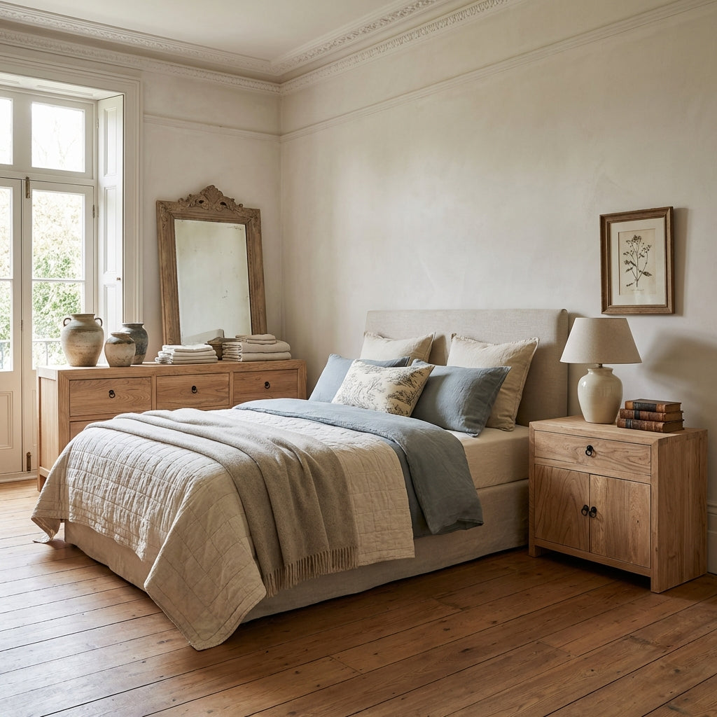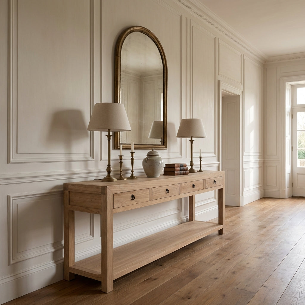 Furniture in Transitional spaces often features solid timber construction, framed panels or refined joinery, softened by neutral upholstery and minimal hardware. The result is elegant without being ornate, contemporary without feeling stark, suited to homes that value both warmth and structure.