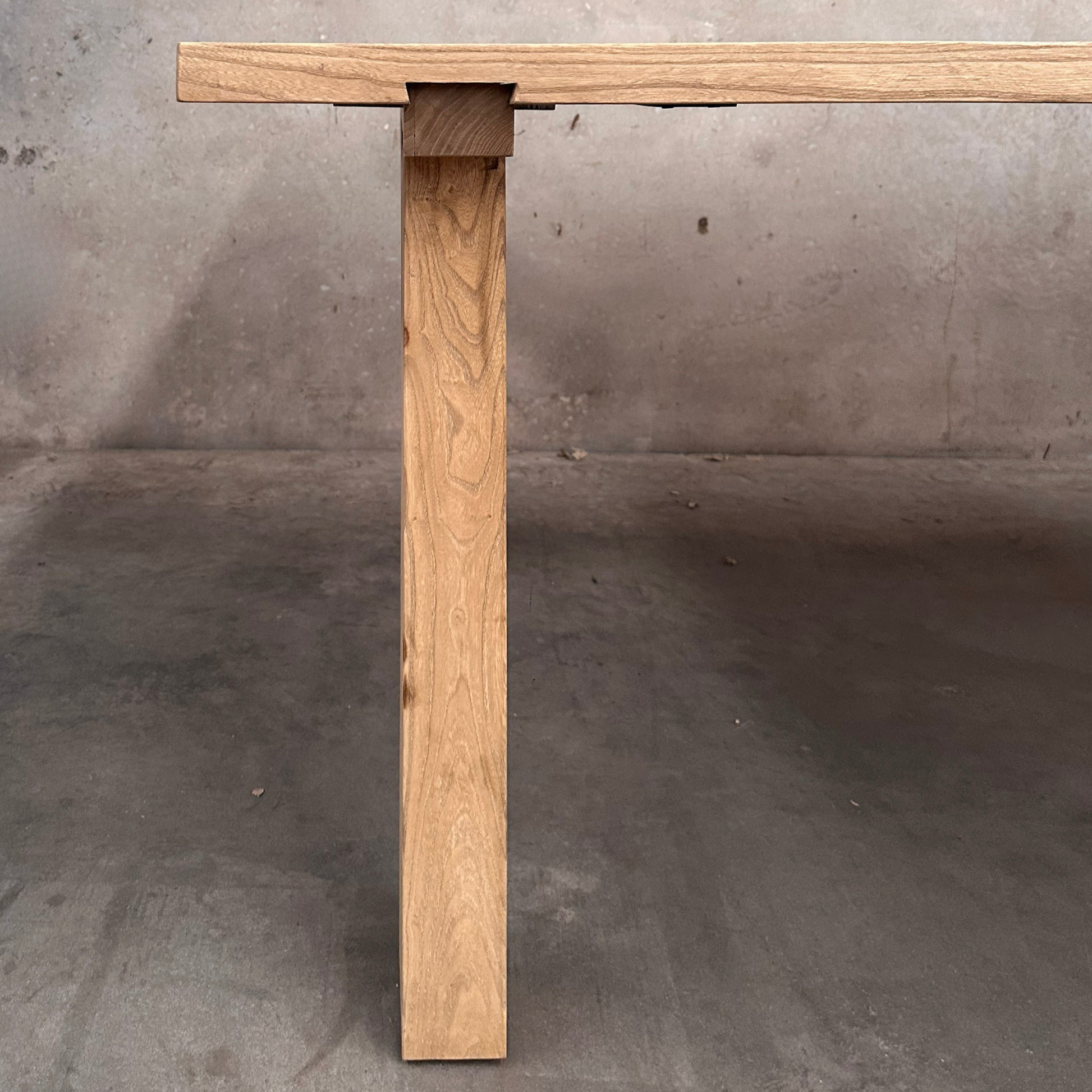 Crafted from solid elm, the Dovetail Table is defined by its expansive proportions and traditional corner joinery. The visible dovetail detailing highlights considered craftsmanship, while the natural grain movement and tonal variation of the elm bring warmth and depth to the clean rectangular form.