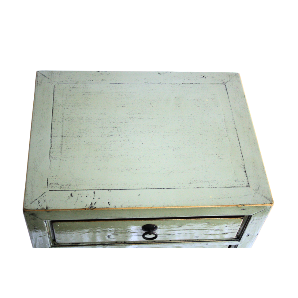 The Lacquered Elm Bedside in Sage brings soft colour and timeless craftsmanship to any space. Finished in a serene sage green lacquer, this compact bedside table draws inspiration from traditional Chinese design, while offering modern practicality in a size perfect for small rooms, guest spaces, or styled corners.