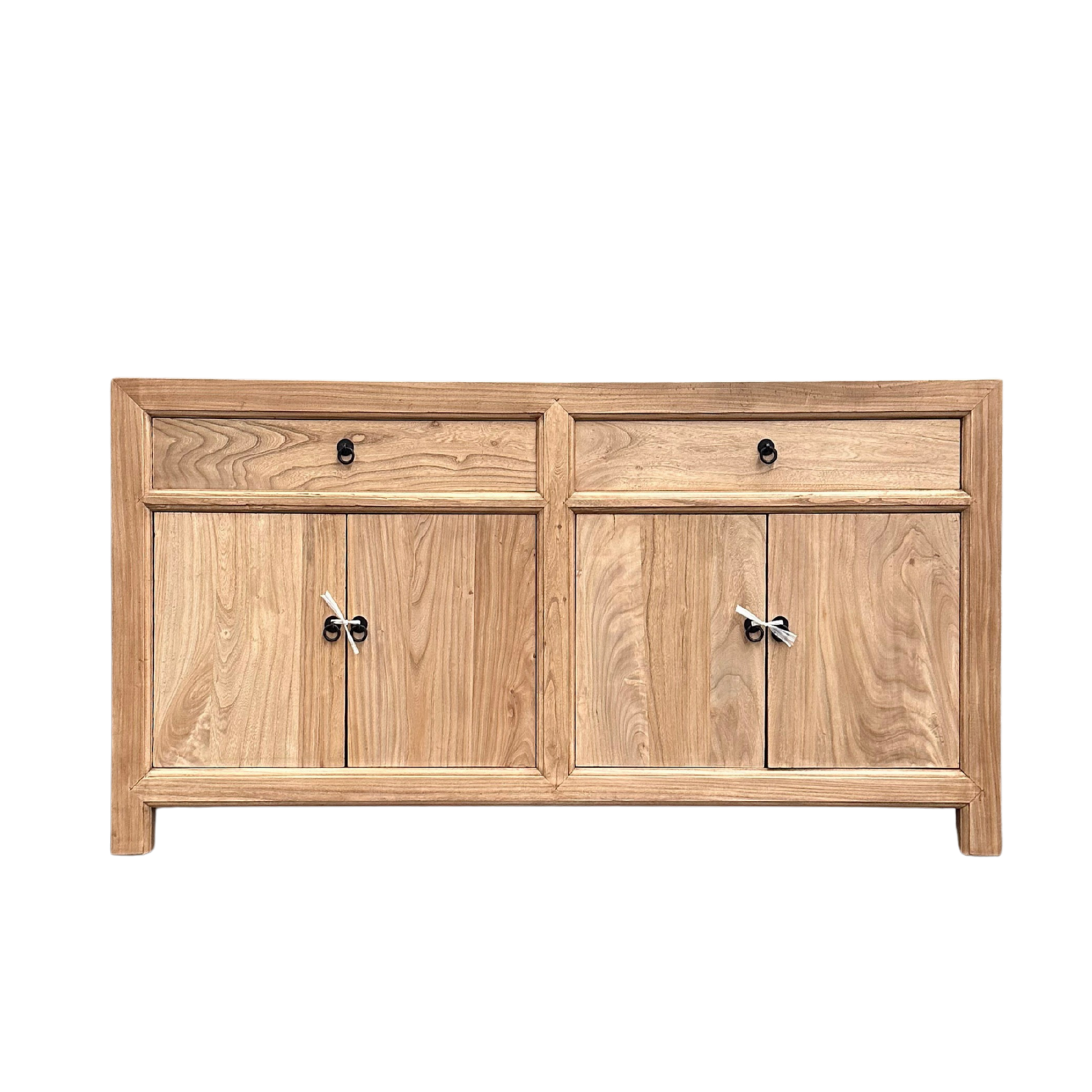 Crafted from solid elm, the Linear 2 Drawer 4 Door Cabinet is defined by its flush top and structured frame, creating a clean, architectural silhouette. The natural grain movement and tonal variation of the elm bring warmth and depth to the balanced 160 cm profile.