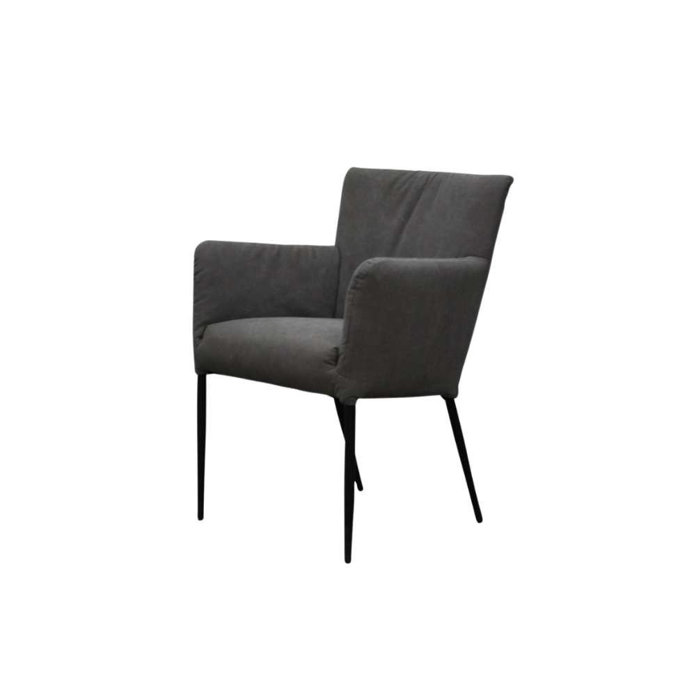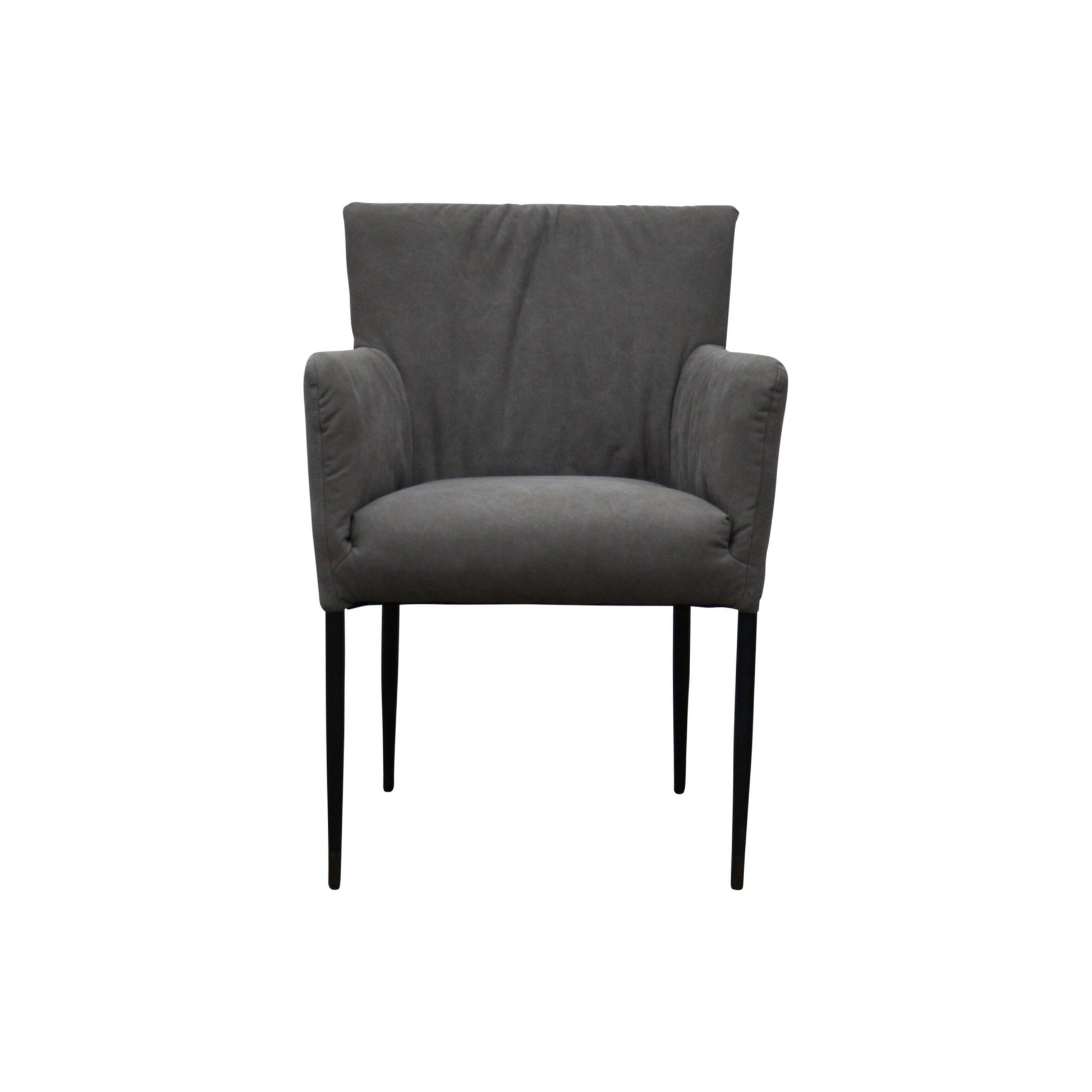 The Loft Carver Chair delivers sleek industrial styling with everyday comfort. Featuring a durable steel frame and a supportive foam-filled seat, this design-driven piece is upholstered in a charcoal cotton canvas that adds texture and a timeless, neutral tone to your interior.